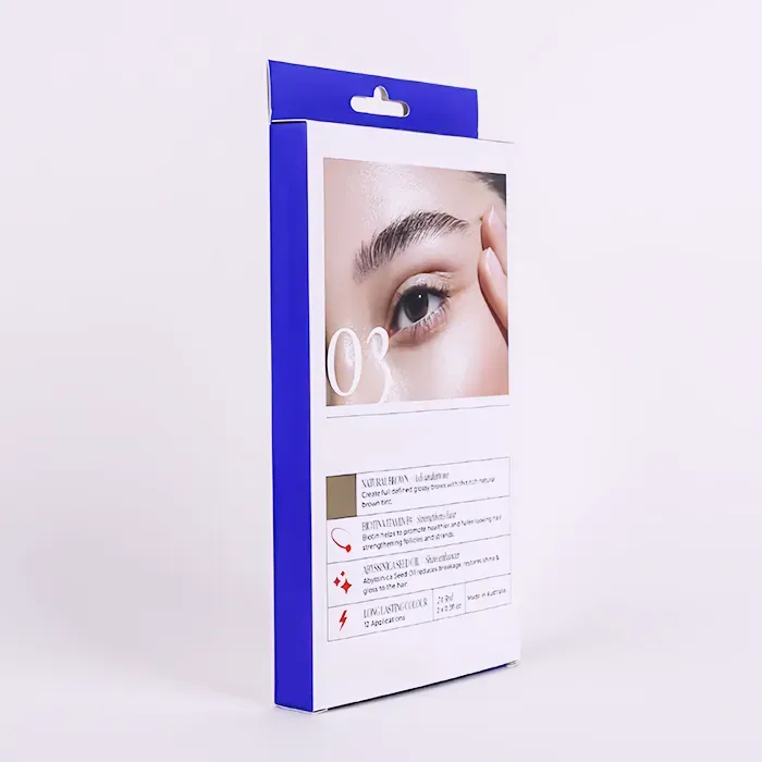 이 인쇄된 행탭 박스는 대중 시장 소매 채널에서 강력한 입지를 확보하고 있는 마켓 뷰티 브랜드를 위해 Doyoupacks에서 디자인하고 생산했습니다. 우리 공장이 처음 포장 구조를 설계할 때 판매 시나리오를 고려했으며, 내부 제품은 눈썹 틴트 펜입니다. 맞춤형 걸이형 소매 상자는 약국 및 미용 전문 매장을 포함한 소매 체인의 후크에 매달아 표시하는 데 적합하기 때문에 가장 적합한 선택입니다. 또한 안정적인 내하중과 양면 오픈 디자인으로 아이브로우 틴트 펜 등 경량의 멀티 아이템 세트 포장에 이상적입니다.