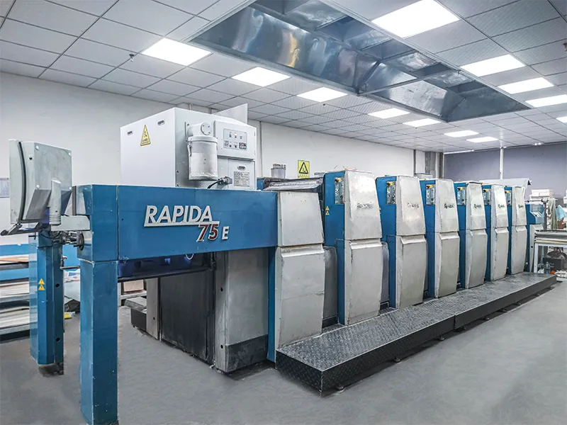 우리는 색상을 정확하게 측정하고 비교할 수 있는 X-Rite 색도계와 공식 Pantone 컬러 카드가 장착된 독일 수입 하이델베르그 및 KBA-RAPIDA 인쇄기를 사용합니다.